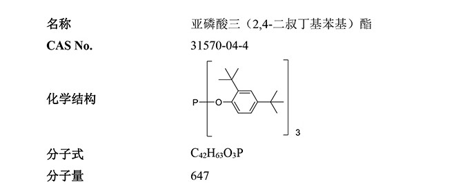 SIONOX? 168 為輔助抗氧化劑, 常和抗氧劑 SIONOX? 1010、SIONOX? 1076 等并用,用于聚丙烯、 聚乙烯、聚苯乙烯、聚酰胺和聚酯。由于 SIONOX? 168 具有較低的揮發性,廣泛應用于熱塑性塑料 的高溫加工過程中。本品用于聚丙烯的加工穩定劑,可有效防止加工溫度下的熱降解,一般用量為 0.05-0.25%;用于高密度聚乙烯, 一般用量為 0.03-0. 1%;用于低密度聚乙烯,為防止噴霜現象, 一 般用量不超過 0. 1%;還可以用于尼龍 6、尼龍 66 ,可明顯降低加工黃變。也和主抗氧化劑并用于長 效穩定和耐候配方中; 本品還可以用于聚碳酸酯、均聚甲醛和共聚甲醛等。